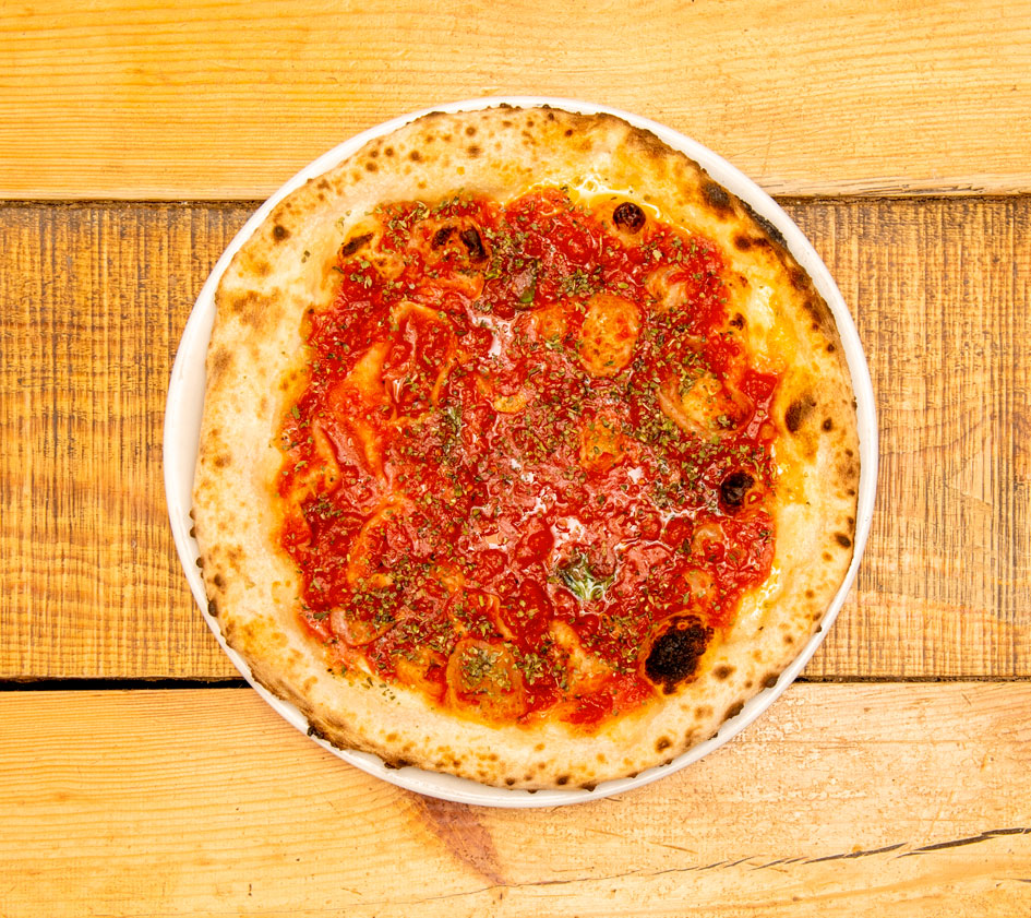 According to the Neapolitan tradition true pizza requires buffalo mozzarella from Campania and the “pummarola n’coppa" (tomato on top).